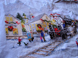 - Country Cottage Needleworks Santa's Village - doing 5 of these for stockings (they will be on the cuff of the stocking) for my niece and her family. I am on the 2nd one of the 5.